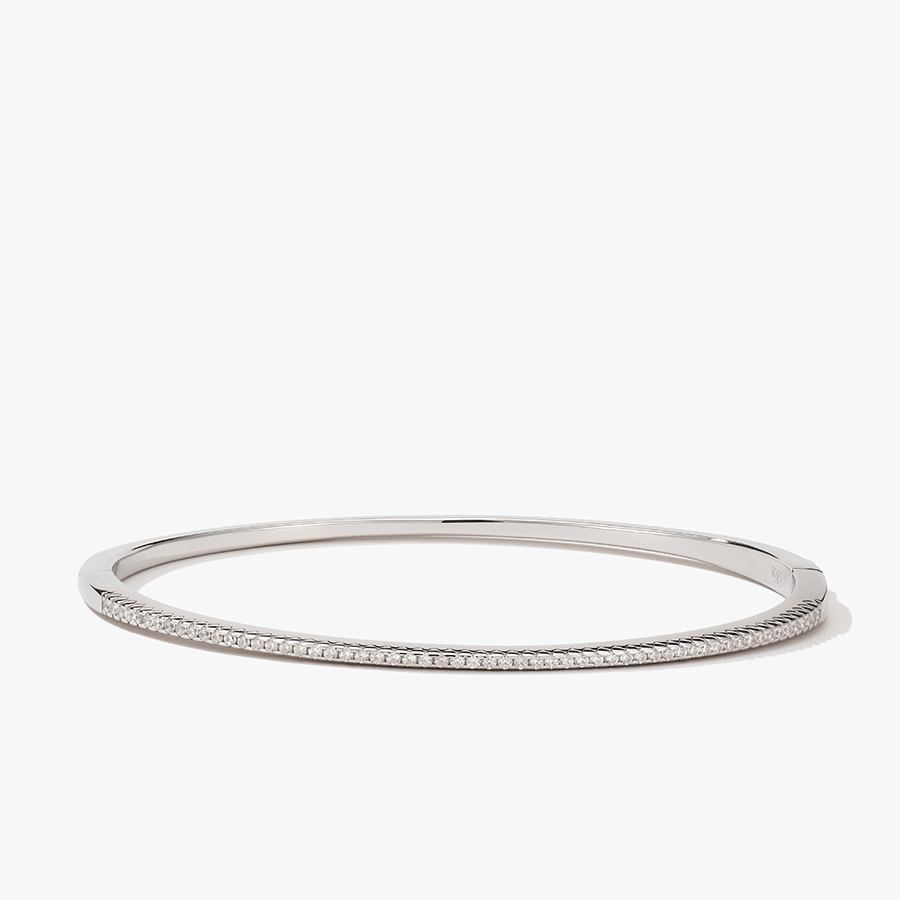 This oval-shaped bangle wraps around your wrist with a gentle, smooth curve—solid yet surprisingly comfortable. Featuring stones set only along half its surface, the design masterfully balances sparkle and simplicity.