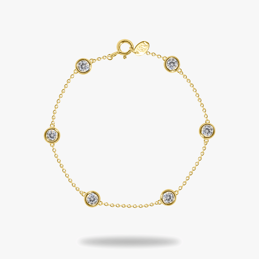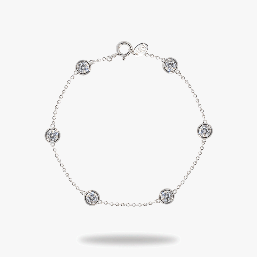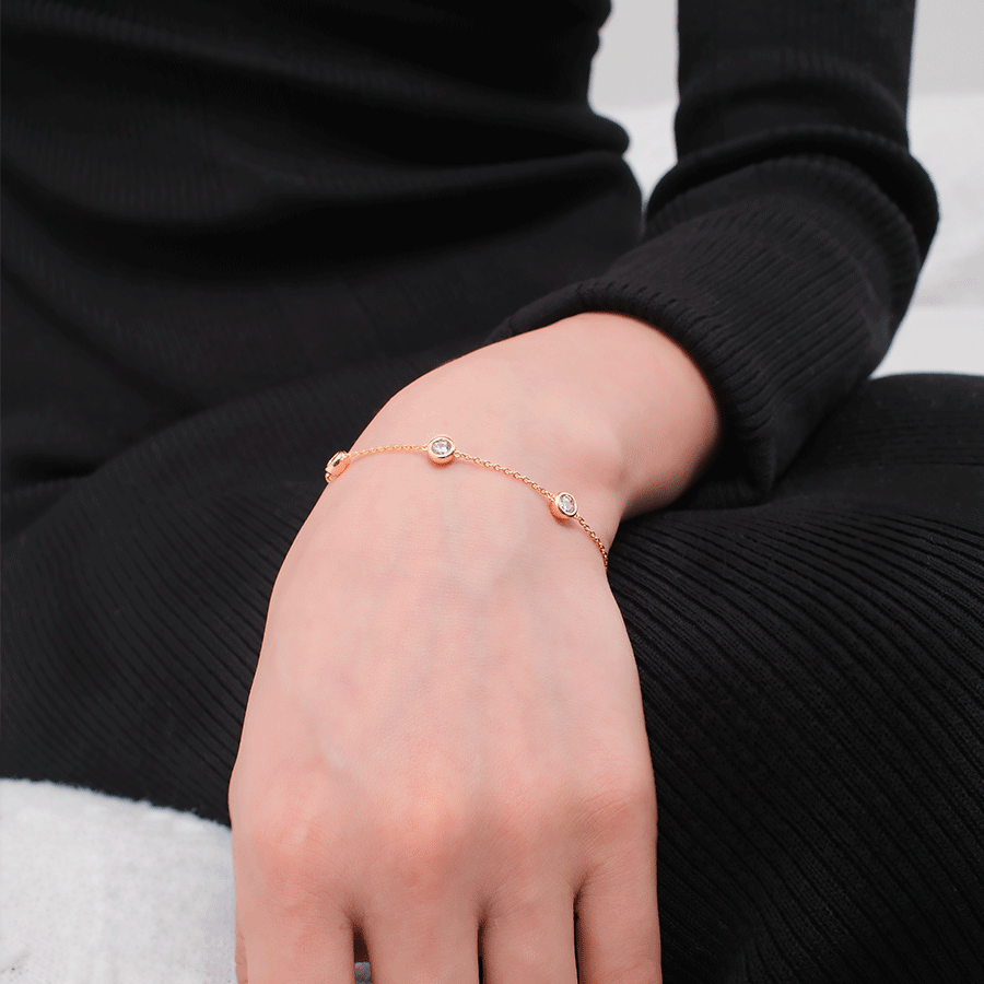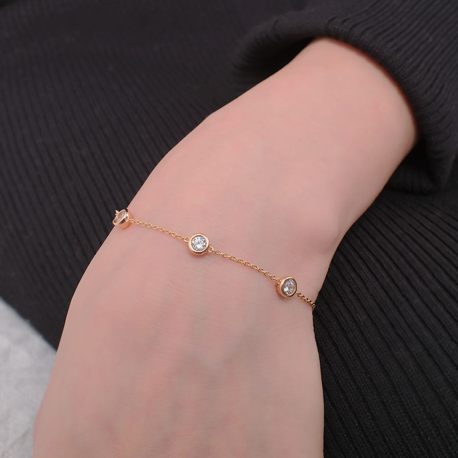This round bezel bracelet embodies minimalist elegance, with a single sparkling stone that captures and reflects light effortlessly.