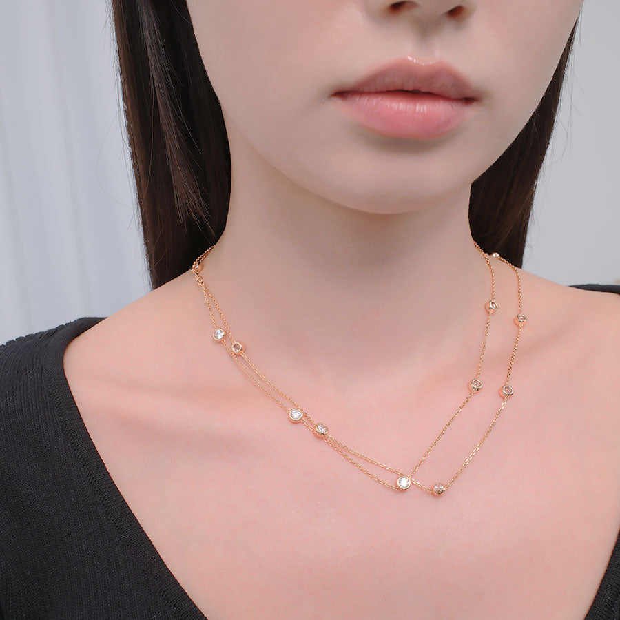 This round bezel necklace embodies minimalist elegance, with a single sparkling stone that captures and reflects light effortlessly.The sleek, timeless design amplifies the stone's radiant brilliance, making a subtle yet unforgettable statement.Stone : 5A zircon 4mm